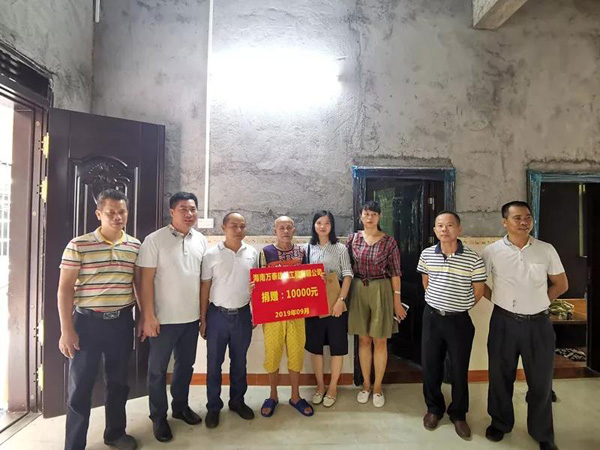 首先,海南萬泰領導一行來到龍?zhí)伶?zhèn)文道村委會洋溶村慰問特困戶杜承國。由于杜承國家地處偏僻,道路運輸不便,人工成本較高,政府危改補貼有限,無法支持杜承國將新房建好。海南萬泰建筑工程公司慷慨解囊,捐贈20000元幫助杜承國完成危房改造工作,安心入住新房。杜承國接到資助款非常激動,表示在自己為錢發(fā)愁的時候,海南萬泰及時伸出了援手,讓他能付清建房款項,早日住上新房,他非常感謝政府和海南萬泰建筑工程公司的關心和支持。