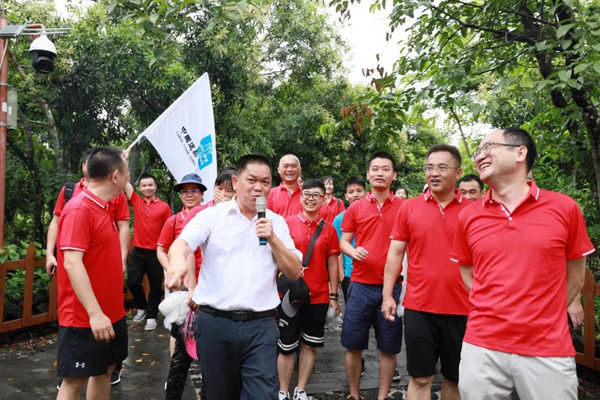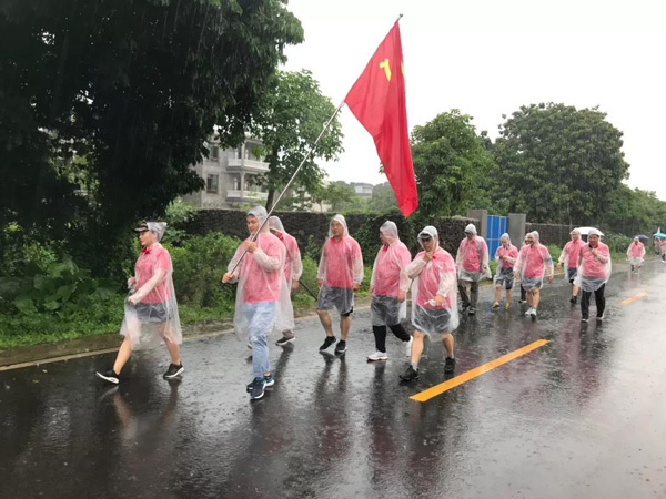 在突來的磅礴大雨中,大家依然堅持前行,努力完成10KM徒步目標(biāo)。