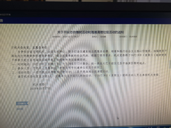 為爭(zhēng)創(chuàng)全省文明機(jī)關(guān)、全國(guó)文明單位,努力打造住建系統(tǒng)志愿服務(wù)品牌,培育和踐行社會(huì)主義核心價(jià)值觀,加強(qiáng)黨員干部生態(tài)文明教育和環(huán)境保護(hù)意識(shí),營(yíng)造友善奉獻(xiàn)的社會(huì)風(fēng)尚,2019年10月19日上午,海南萬(wàn)泰公司黨支部組織黨員參加省機(jī)關(guān)發(fā)起的志愿植樹和清理海灘垃圾環(huán)?;顒?dòng)。廳機(jī)關(guān)、直屬單位、青年文明號(hào)創(chuàng)建單位黨員干部共50余人參加活動(dòng)。