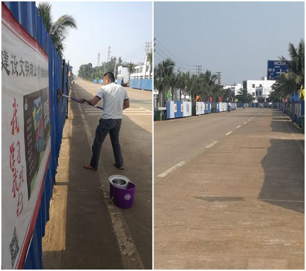 為積極做好大坡、三門坡、紅旗和云龍四個鎮(zhèn)墟改造ppp項目沿線的環(huán)境衛(wèi)生,展現(xiàn)良好的企業(yè)形象,助力環(huán)島國際自行車賽,自接到消息起,萬泰便將相關(guān)要求下發(fā)至項目部,要求項目部做好大坡、三門坡、紅旗和云龍四個鎮(zhèn)墟沿線的相關(guān)工作。從26日起,萬泰自發(fā)組織了一批工人,積極投入到準(zhǔn)備工作當(dāng)中。對公司承建的鎮(zhèn)墟改造ppp項目的圍擋、防護(hù)等設(shè)施進(jìn)行細(xì)致排查,組織工人對項目沿線的環(huán)境衛(wèi)生進(jìn)行清掃。經(jīng)過三天的奮戰(zhàn),大坡、三門坡、紅旗和云龍等四個鎮(zhèn)墟項目提前完成了相關(guān)準(zhǔn)備工作,道路干凈整潔,為該路段的環(huán)島國際自行車賽營造了一個整潔有序的比賽環(huán)境。