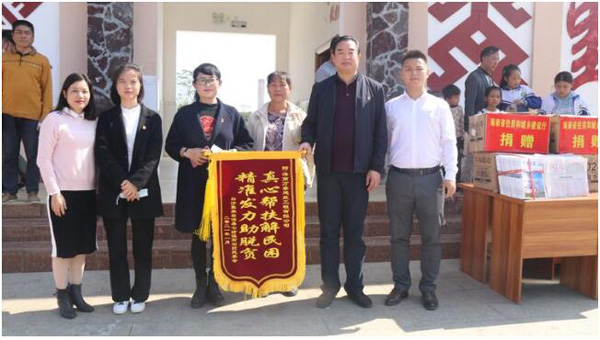 高石村委會(huì)向海南萬(wàn)泰敬獻(xiàn)“真心幫扶解民困,精準(zhǔn)發(fā)力助脫貧”錦旗,表達(dá)了對(duì)萬(wàn)泰出資修建民心漫水橋的感恩。顏總雙手接過(guò)村民送上的錦旗,表示本著奉獻(xiàn)愛(ài)心、回饋社會(huì)的理念,希望通過(guò)萬(wàn)泰的支持,當(dāng)?shù)卮迕竦娜兆舆^(guò)得越來(lái)越好。