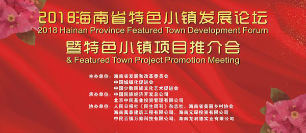 2018年12月2日,為貫徹黨中央、國務(wù)院關(guān)于推進(jìn)小城鎮(zhèn)建設(shè)的精神和習(xí)近平總書記在慶祝海南建省辦經(jīng)濟特區(qū)30周年大會上關(guān)于“發(fā)展鄉(xiāng)村旅游,打造一批體現(xiàn)熱帶風(fēng)情的精品小鎮(zhèn)”的重要講話精神,促進(jìn)特色小鎮(zhèn)和特色小城鎮(zhèn)的建設(shè)發(fā)展和少數(shù)民族文化保護(hù),落實國家發(fā)展改革委先后印發(fā)的《關(guān)于加快美麗特色?。ǔ牵╂?zhèn)建設(shè)的指導(dǎo)意見》《關(guān)于規(guī)范推進(jìn)特色小鎮(zhèn)和特色小城鎮(zhèn)建設(shè)的若干意見》《關(guān)于建立特色小鎮(zhèn)和特色小城鎮(zhèn)高質(zhì)量發(fā)展機制的通知》的要求,進(jìn)一步規(guī)范特色小鎮(zhèn)建設(shè),推動特色小鎮(zhèn)高質(zhì)量發(fā)展,由海南省發(fā)展與改革發(fā)展委員會、中國城鎮(zhèn)化促進(jìn)會、中國少數(shù)民族文化藝術(shù)促進(jìn)會發(fā)起主辦,由中國民族經(jīng)濟開發(fā)總公司、北京中民基業(yè)投資管理有限公司承辦的2018海南省特色小鎮(zhèn)發(fā)展論壇暨特色小鎮(zhèn)項目推介會,在位于海南??诘闹袊êD希└母锇l(fā)展研究院會議廳成功舉行。