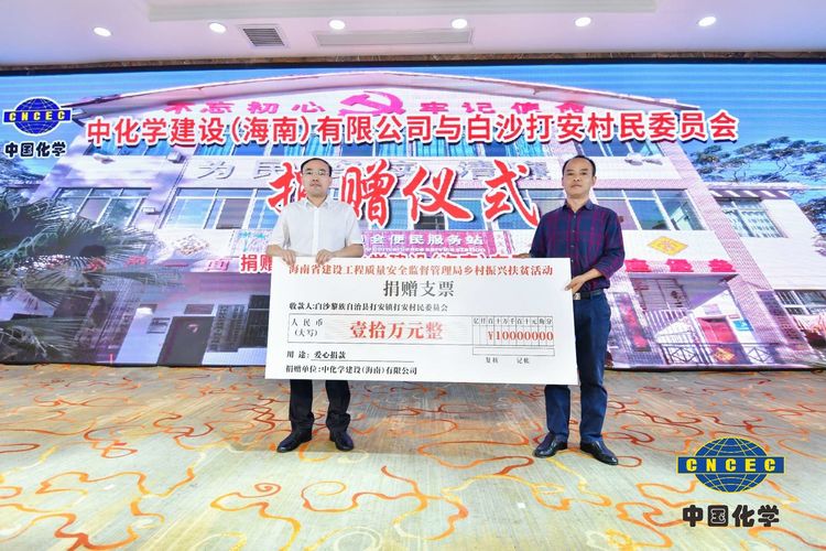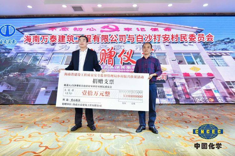 在捐贈(zèng)儀式環(huán)節(jié),中化學(xué)建設(shè)(海南)有限公司董事長(zhǎng)姚輝國(guó)、總經(jīng)理張小龍和海南萬(wàn)泰建筑工程有限公司常務(wù)副總經(jīng)理顏利共同為白沙縣打安村捐贈(zèng)20萬(wàn)元,體現(xiàn)了企業(yè)在發(fā)展的同時(shí),不忘承擔(dān)社會(huì)責(zé)任,慷慨解囊,助力鄉(xiāng)村基礎(chǔ)設(shè)施建設(shè),改善民生問題,推動(dòng)鄉(xiāng)村振興工作進(jìn)一步發(fā)展。