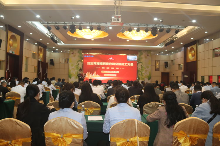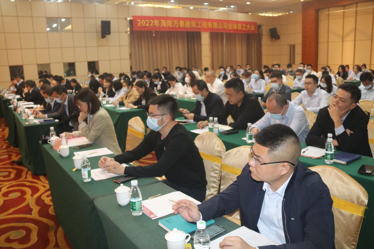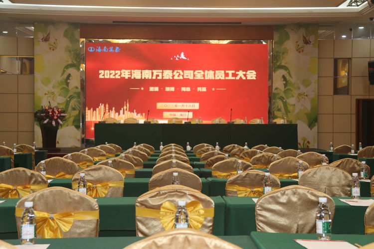 激情奮進新時代 同心共筑萬泰夢,1月16日,2022年萬泰集團全體員工大會在海口寶發(fā)勝意酒店成功召開,會議全面總結了2021年萬泰生產經營情況,研判形勢,研究部署2022年重點工作,推動萬泰集團工作再上新臺階。總經理張小龍、常務副總經理顏利及全體員工近150人參加了會議。本次會議嚴格落實海南省疫情防控政策要求,采取“現(xiàn)場+視頻連線”的形式召開,會議由總經理助理曹珊珊主持。