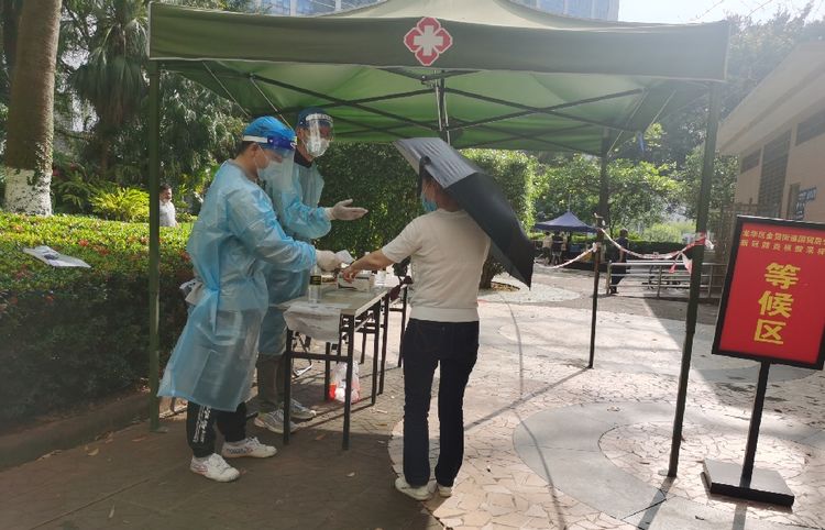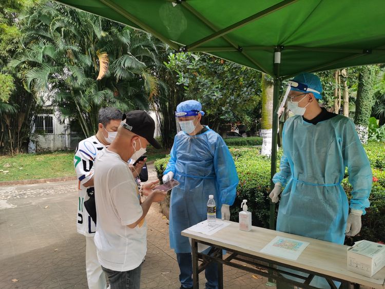 疫情當前,刻不容緩。3月25日,受國內疫情防控形勢影響,為響應政府的號召,萬泰志愿者們在顏利常務副總的帶領下,前往海口萬利隆酒店對面的三角街心公園協(xié)助金貿街道辦、金貿街道商會開展社區(qū)防疫核酸檢測等項工作?!?我是一塊磚,哪里需要往哪搬”測體溫、掃健康碼、錄個人信息、發(fā)檢測試劑……萬泰人“穿梭”在核酸檢測現(xiàn)場的各個崗位上,無懼汗水的浸濕、烈日的熾灼、疫情的危險,堅守崗位履職盡責。