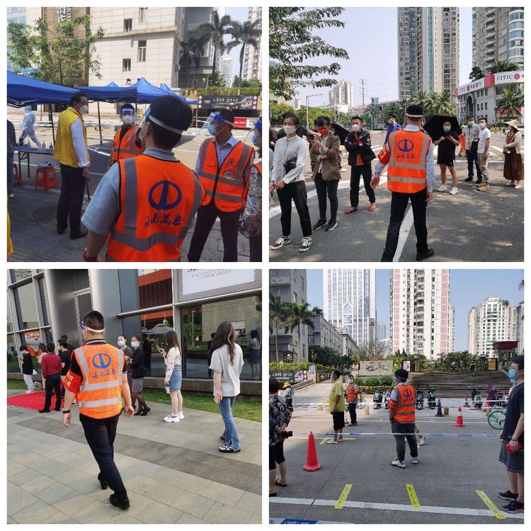 不忘初心,肩負擔當。4月6日,龍華區(qū)政府進行了主城區(qū)全員核酸檢測工作,在公司常務副總顏利的帶領下,公司員工分批次,有秩序, 有組織地奔赴金貿街道轄區(qū)內的置地花園、電力村、??跒?、百方廣場等區(qū)域核酸檢測點,協(xié)助開展核酸檢測工作,做好現(xiàn)場秩序維護?!罢埓蠹议g隔1米排好隊”“請戴好口罩,提前打開健康碼”……從中午到晚上9時,海南萬泰公司的員工堅守崗位盡職盡責,維護好核酸檢測人員隊伍秩序,耐心解答群眾的疑問,安撫焦急等待的心情,幫助群眾操作健康碼,引導老人、孕婦優(yōu)先檢測,充分彰顯了無私奉獻的志愿精神。