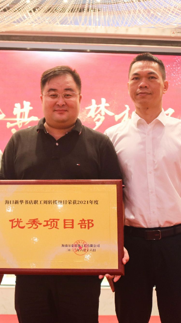 各位嘉賓領(lǐng)導(dǎo)的講話內(nèi)容深入人心,頒獎(jiǎng)環(huán)節(jié)更是令人激動(dòng)。海南萬(wàn)泰始終堅(jiān)持創(chuàng)精品工程,更是積極推動(dòng)黨建引領(lǐng)促進(jìn)企業(yè)發(fā)展。在顏利副總的主持下,經(jīng)公司考評(píng)小組綜合評(píng)定,評(píng)選出2021年度“優(yōu)秀黨務(wù)工作者”“優(yōu)秀項(xiàng)目負(fù)責(zé)人”“優(yōu)秀項(xiàng)目部”,特在本次慶典活動(dòng)上進(jìn)行頒獎(jiǎng),海南萬(wàn)泰黨支部副書(shū)記孟晨榮獲“優(yōu)秀黨務(wù)工作者”,??谛氯A書(shū)店職工周轉(zhuǎn)樓項(xiàng)目部榮獲“優(yōu)秀項(xiàng)目部”,張濤榮獲該項(xiàng)目“優(yōu)秀項(xiàng)目負(fù)責(zé)人”。