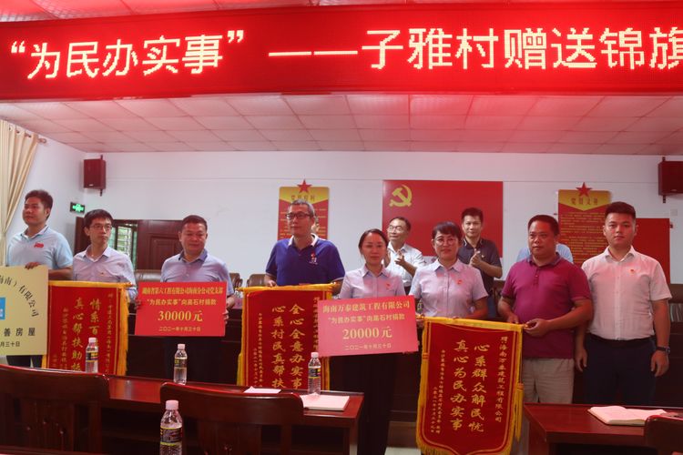 海南萬泰建筑工程有限公司自成立以來就堅(jiān)定不移聽黨話、感黨恩、跟黨走,通過開展黨課、為民辦實(shí)事、主題教育活動(dòng)等形式,學(xué)以正心、學(xué)以致用、學(xué)以創(chuàng)新。近些年,在省住建廳的指導(dǎo)和幫助下,在企業(yè)不斷發(fā)展壯大的同時(shí),不忘承擔(dān)社會(huì)責(zé)任,積極響應(yīng)省廳關(guān)于鄉(xiāng)村振興、鞏固脫貧攻堅(jiān)等公益民生事業(yè)的號(hào)召,慷慨解囊,為民辦實(shí)事,為白沙縣爾信村、高石村、打安村等多個(gè)幫扶村捐款捐物,修筑了民心漫水橋、便民路、村民文化廣場路燈及牛棚改造等項(xiàng)目,以一己綿薄奉獻(xiàn)之力,倡導(dǎo)社會(huì)和諧大愛。