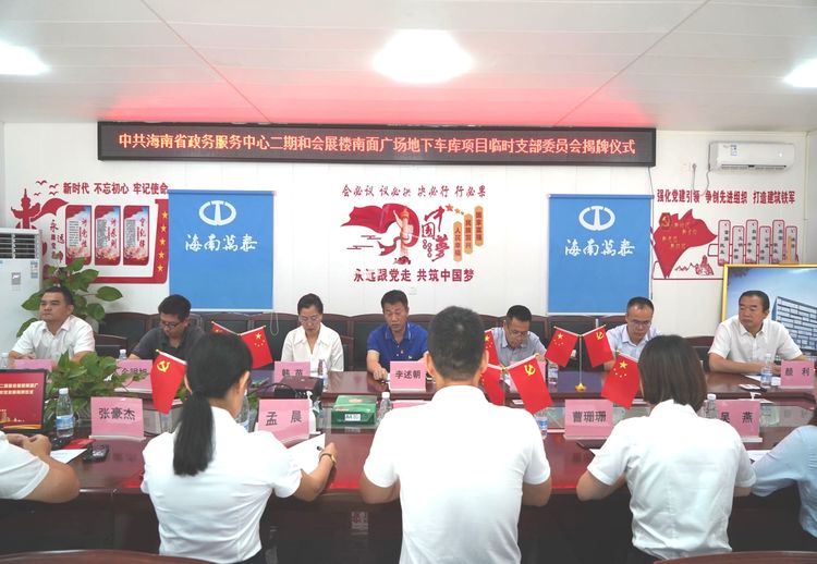 為進(jìn)一步提高黨組織在基層的影響力,增強(qiáng)黨組織在項(xiàng)目工地上的凝聚力,貫徹落實(shí)“項(xiàng)目建在哪,支部就設(shè)在哪”的理念,經(jīng)海南省住建行業(yè)黨委的批準(zhǔn),2022年6月24日,萬泰公司承建的省政務(wù)服務(wù)中心二期和會(huì)展樓南面廣場地下車庫項(xiàng)目臨時(shí)黨支部揭牌儀式暨為一線工人送“清涼”活動(dòng)在項(xiàng)目部現(xiàn)場圓滿舉辦。受海南省住建廳領(lǐng)導(dǎo)的委托,省住建行業(yè)黨委專職副書記李述朝、省住建廳質(zhì)安處副處長韓苗、省質(zhì)安局副書記劉長征蒞臨現(xiàn)場指導(dǎo)揭牌儀式并參加為一線工人送“清涼”活動(dòng)。公司黨支部書記曹珊珊、常務(wù)副總經(jīng)理顏利、副總經(jīng)理吳坤芳,項(xiàng)目臨時(shí)黨支部書記吳燕等相關(guān)人員參加了本次活動(dòng),儀式由公司黨支部副書記孟晨主持。