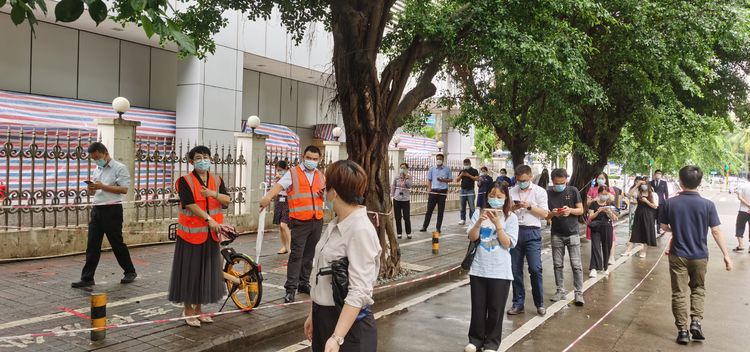 本次疫情突如其來(lái),核酸檢測(cè)工作時(shí)間緊迫,黨員志愿者們克服困難,到達(dá)指定點(diǎn)位開(kāi)展協(xié)調(diào)工作?!澳茫?qǐng)按順序排好隊(duì),保持一米距離;請(qǐng)大家提前打開(kāi)健康碼,避免網(wǎng)絡(luò)擁堵影響檢測(cè);你看這里就可以打開(kāi)健康碼;請(qǐng)佩戴好口罩……”秩序維護(hù)、測(cè)量體溫、提供咨詢引導(dǎo)、解決群眾困難、帶領(lǐng)孕婦及行動(dòng)不便的老人走綠色通道等等,從中午到晚上,大家各司其職,與醫(yī)務(wù)人員并肩作戰(zhàn),為檢測(cè)現(xiàn)場(chǎng)“保駕護(hù)航”,贏得了群眾的認(rèn)可與好評(píng)。