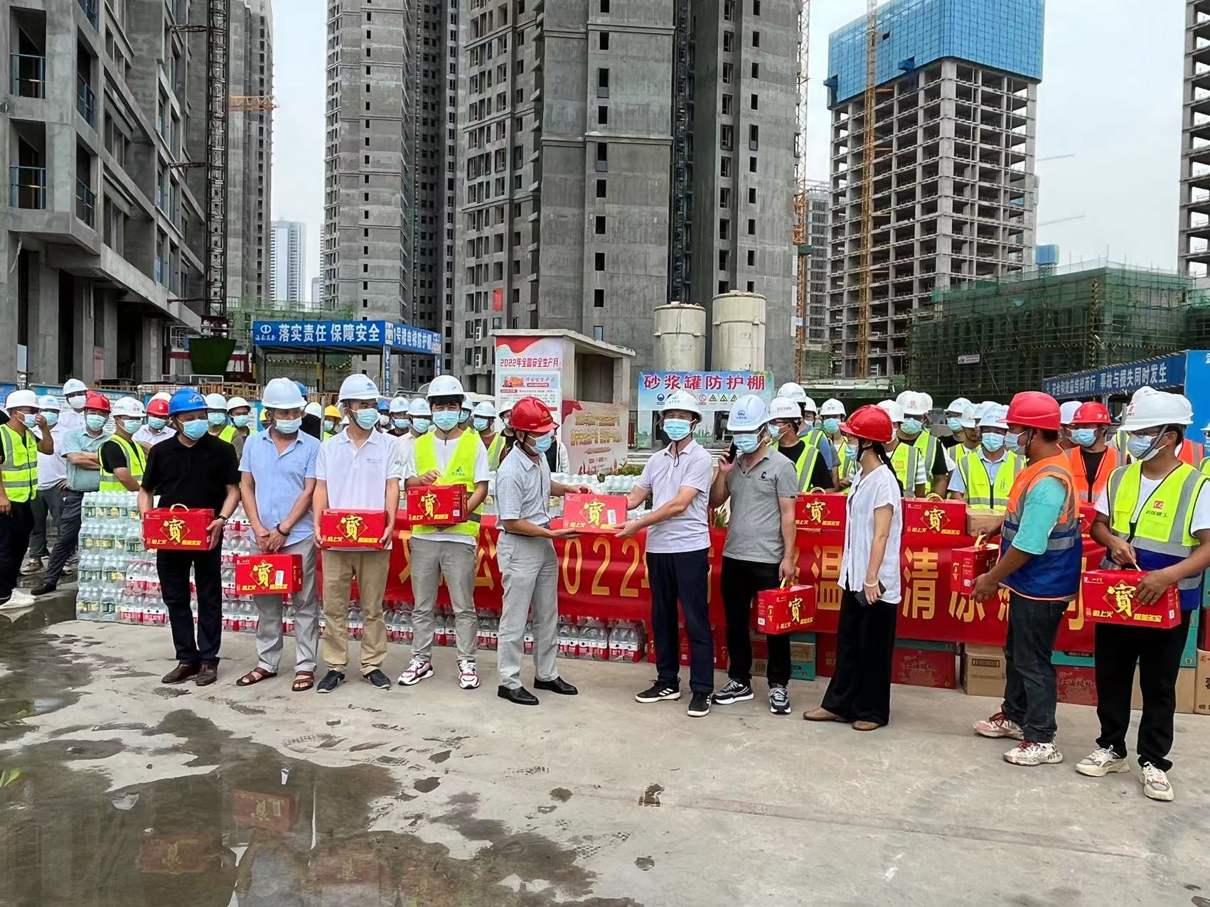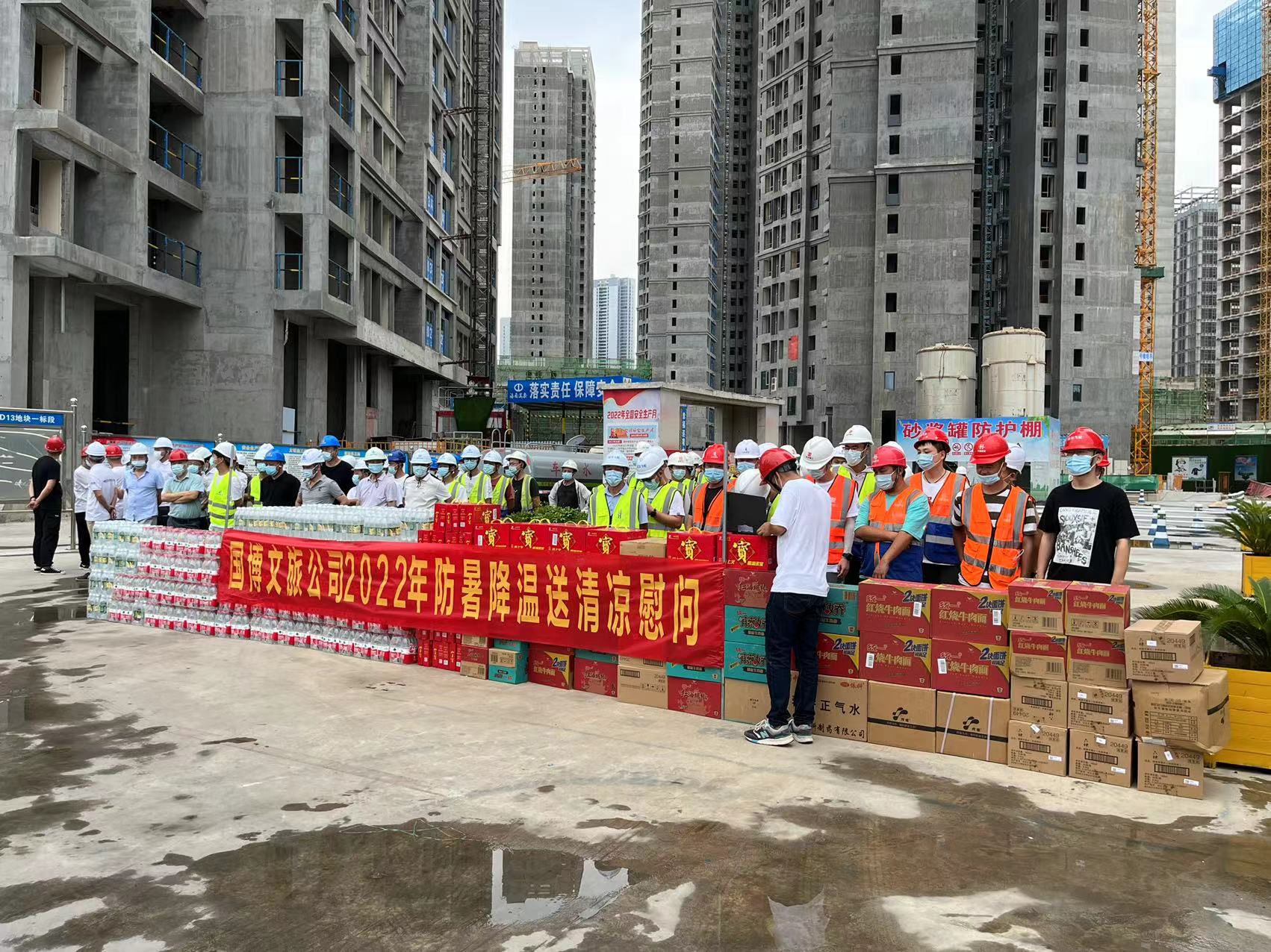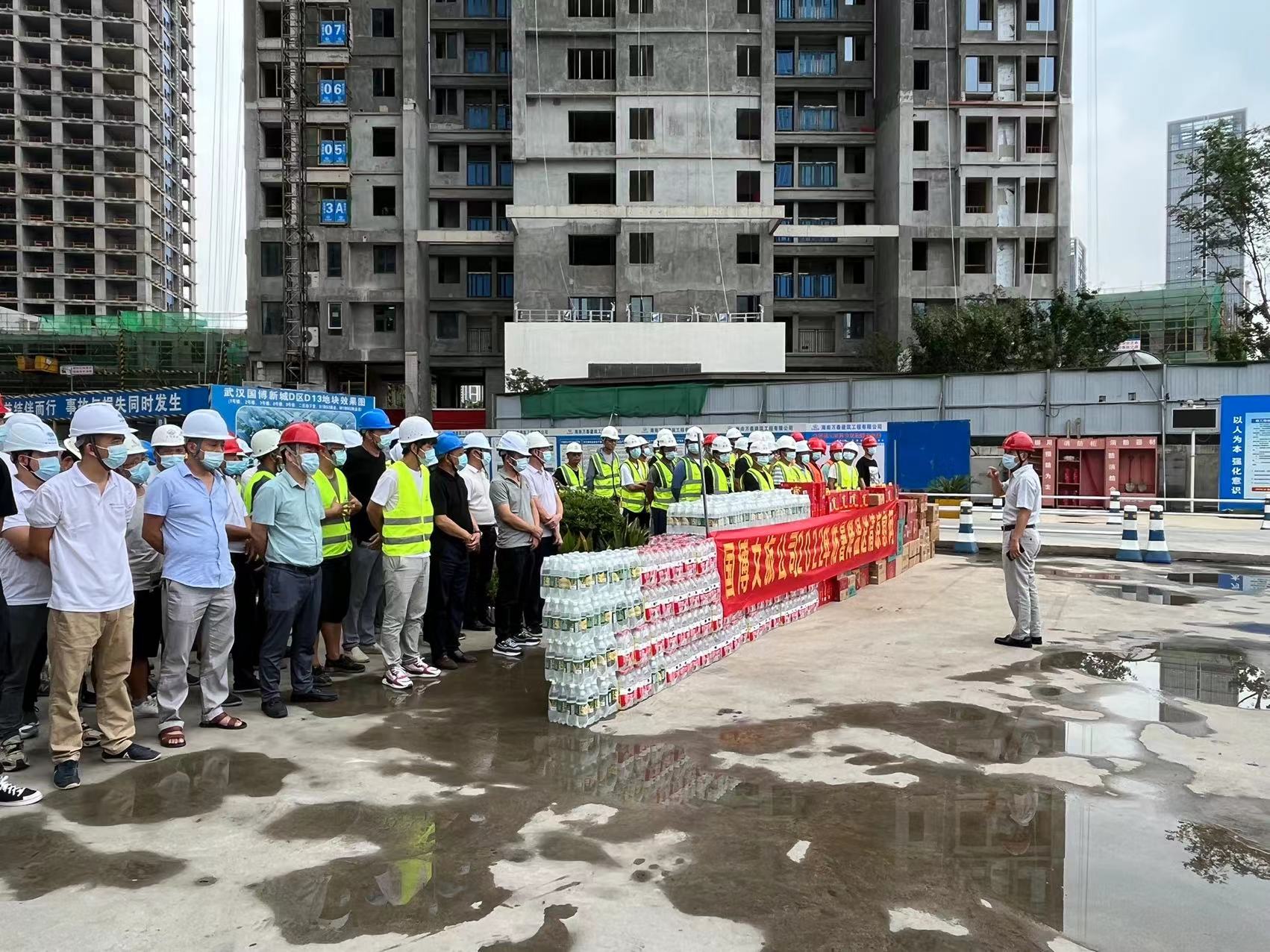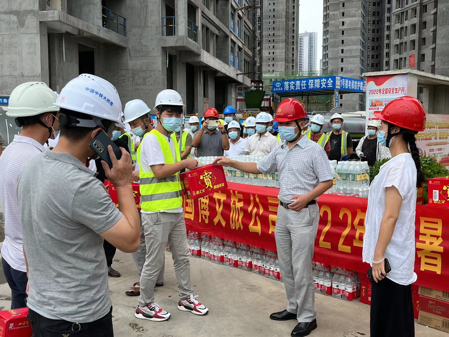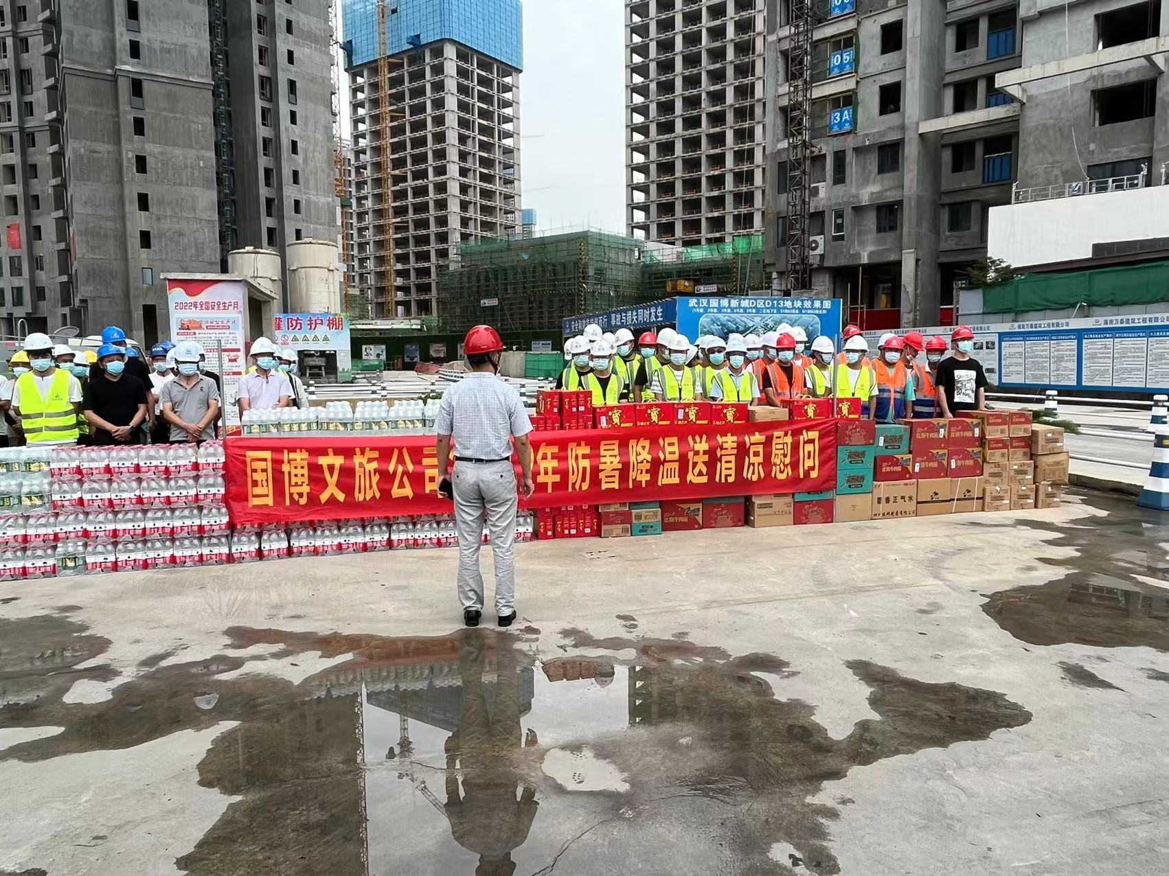 夏日送清涼,真情沁人心。2022年7月28日,武漢國博文旅公司在武漢國博新城DⅡ、D13、D14、C2、C4地塊成功舉辦2022年“夏送清涼”一線工人慰問活動。武漢國博文旅副總經理江立偉、質安部張部長,海南萬泰湖北分公司承建的武漢國博新城D區(qū)D13地塊一標段項目經理陶少武以及中鐵大橋局,中國中冶,上海建工、武漢建工,天時建安,中鐵四局,方正監(jiān)理,天衡監(jiān)理,武院監(jiān)理等十四家公司相關人員參加本次慰問活動。