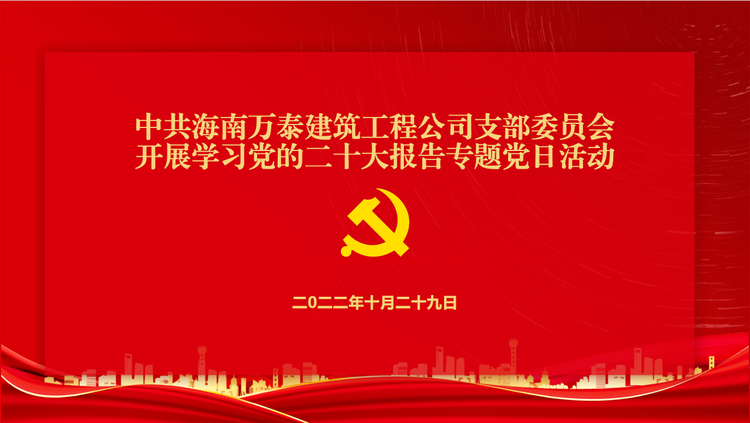 金秋十月,山河錦繡。為深入學(xué)習(xí)貫徹黨的二十大報(bào)告,領(lǐng)悟會議精神,堅(jiān)定理想信念,2022年10月29日,海南萬泰公司聯(lián)合金貿(mào)街道商會組織開展學(xué)習(xí)黨的二十大報(bào)告專題黨日活動(dòng)。