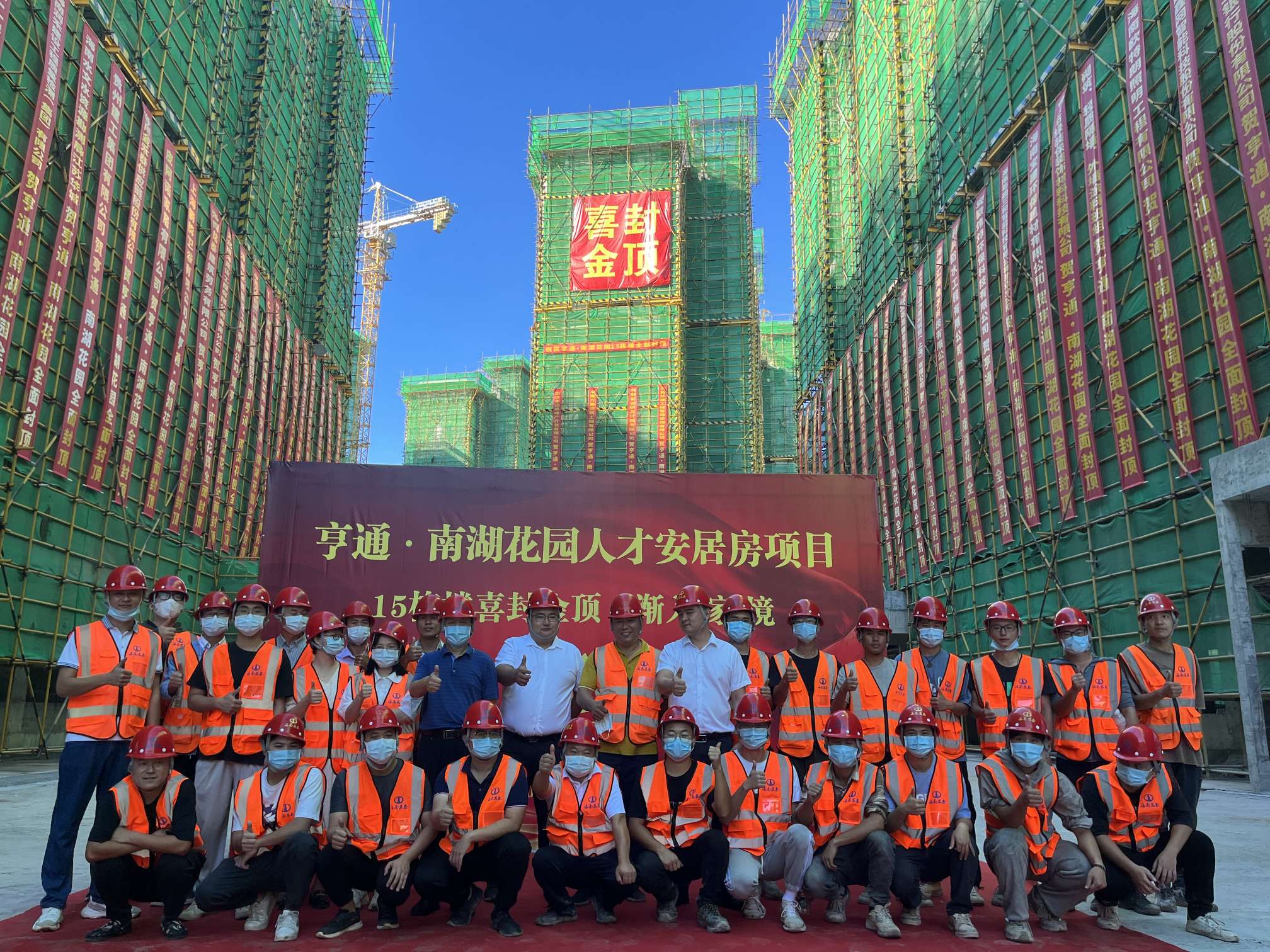 亨通安居集團董事長周金華向所有為項目建設辛勤付出的一線人員致以衷心的感謝,并表示該項目自開工以來,工程持續(xù)受到疫情、高溫等不利因素的干擾,給施工建設造成了極大的阻礙。面對困難,項目部以“能力提升建設年”為載體,以“安全生產(chǎn)月”活動為有力抓手,在確保安全、質量的前提下,采取各種舉措搶抓工程進度,順利實現(xiàn)了主體結構全面封頂,希望大家能夠再接再厲,共同做好項目建設后續(xù)工作。
