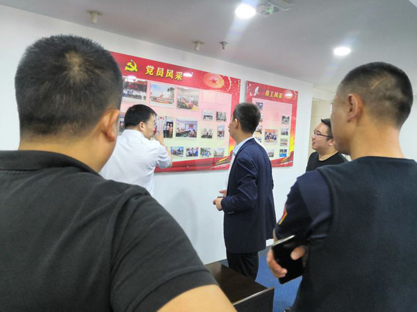 各位領(lǐng)導(dǎo)參觀了我公司的辦公環(huán)境,在參觀過程中領(lǐng)導(dǎo)對公司的黨建文化及公司文化給了高度贊許。