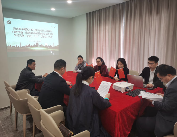 隨后,海南萬泰公司黨支部、亨通·南湖花園項(xiàng)目臨時(shí)黨支部集中組織學(xué)習(xí)了黨的二十大會(huì)議精神、海南省住房和城鄉(xiāng)建設(shè)工作會(huì)議精神以及建筑行業(yè)有關(guān)法律法規(guī)。項(xiàng)目臨時(shí)黨支部書記何承中表示,在今后的工作開展中,將繼續(xù)堅(jiān)持黨建引領(lǐng)項(xiàng)目建設(shè),與項(xiàng)目部一同,不斷努力提升項(xiàng)目安全生產(chǎn)、文明施工、工程質(zhì)量水平,確保項(xiàng)目后續(xù)建設(shè)工作順利進(jìn)行。