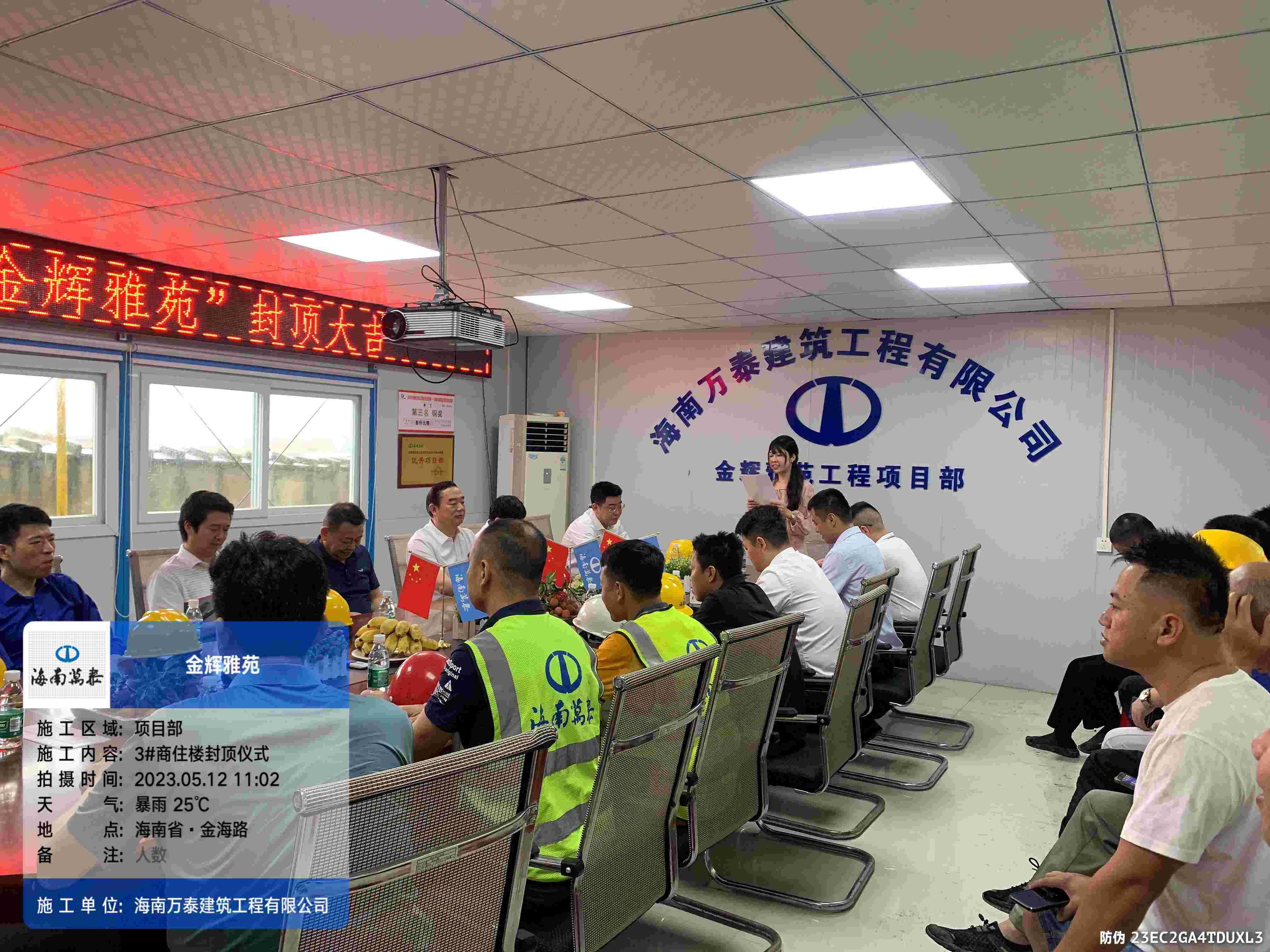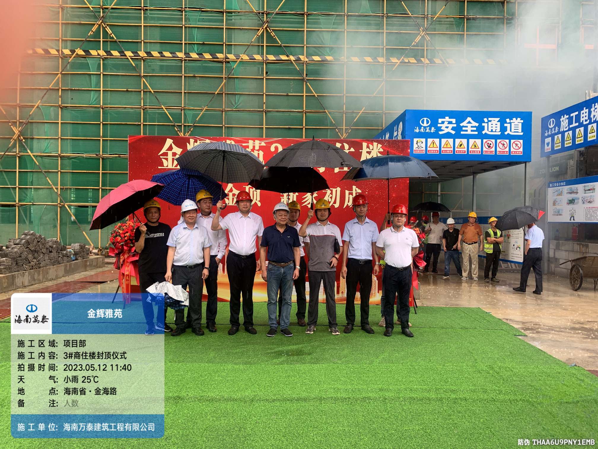 金梁拔地千年固,玉柱擎天萬事興。2023年5月12日上午,海南萬泰承建的瓊海金輝雅苑項目喜封金頂,封頂儀式在項目工地現(xiàn)場圓滿舉辦,海南輝景房地產(chǎn)開發(fā)有限責(zé)任公司董事長劉輝、股東文靖杰、總經(jīng)理陳小勇,海南萬泰建筑工程有限公司常務(wù)副總經(jīng)理顏利、工程一處總助袁軍、工程部副部長張豪杰、項目經(jīng)理劉達(dá)濱以及監(jiān)理等參與和支持項目建設(shè)的各級領(lǐng)導(dǎo)出席了本次活動,共同見證這一喜慶時刻。