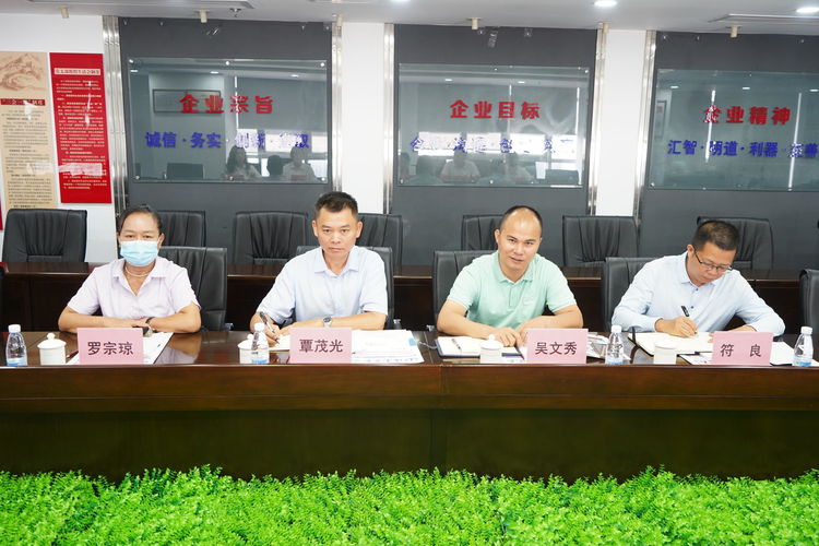 顏利總對覃茂光會長一行的到來表示歡迎,按照調(diào)研組的主要議題,就企業(yè)目前的生產(chǎn)經(jīng)營情況、高質(zhì)量發(fā)展投入情況、海南封關(guān)前準備情況、所遇到的難點痛點等內(nèi)容,通過觀看公司宣傳片及以PPT的形式匯報了海南萬泰公司的發(fā)展歷程和取得的成績。顏總表示期望協(xié)會能夠在黨建、業(yè)務(wù)、經(jīng)營工作等方面多給予企業(yè)幫助和支持,并組織所屬企事業(yè)單位開展經(jīng)驗學(xué)習(xí)交流溝通活動,進一步推動企業(yè)高質(zhì)量發(fā)展。