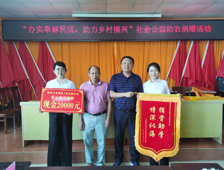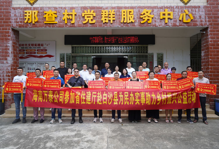 為進(jìn)一步助力鄉(xiāng)村振興工作,為民辦實(shí)事、解民憂,充分發(fā)揮企業(yè)的奉獻(xiàn)力量,助力海南自貿(mào)港建設(shè),2023年8月28日,海南萬(wàn)泰公司參加了由省住建廳赴白沙縣阜龍鄉(xiāng)那查村舉辦的“辦實(shí)事解民憂,助力鄉(xiāng)村振興”公益活動(dòng)。省住建廳科技處、辦公室、招標(biāo)辦,白沙縣住建局,省建設(shè)人力資源管理協(xié)會(huì),省智能建造協(xié)會(huì)等有關(guān)領(lǐng)導(dǎo)以及海南萬(wàn)泰建筑工程有限公司等多家企業(yè)共同參加本次活動(dòng)。