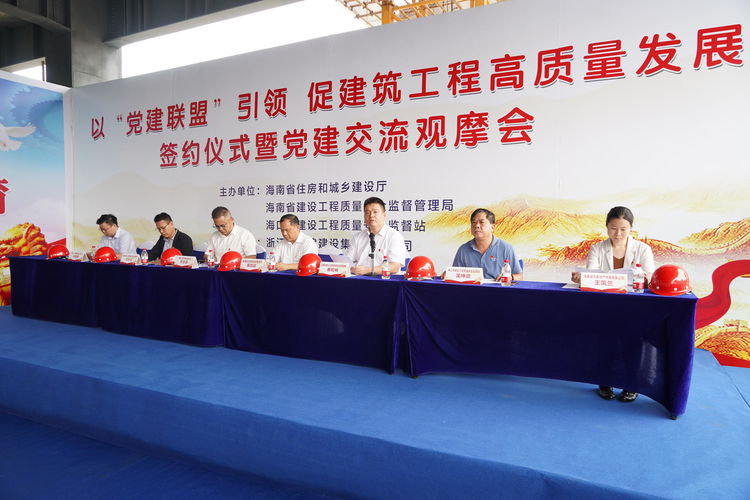 為深入學(xué)習(xí)貫徹習(xí)近平新時(shí)代中國特色社會主義思想,深化黨建聯(lián)創(chuàng)共建,推動黨建工作進(jìn)一步走深走實(shí),按照省質(zhì)安局的通知要求,近日,海南萬泰公司黨支部組織工程部、綜合部等有關(guān)人員在浙江三建江畔濠庭項(xiàng)目參加了海南省建設(shè)工程質(zhì)量安全監(jiān)督管理局黨建聯(lián)盟簽約儀式暨黨建交流觀摩會。 省質(zhì)安局黨支部書記、局長蔡和林主持了會議。