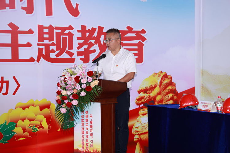 ??谑薪ㄔO(shè)工程質(zhì)量安全監(jiān)督站黨委書記、站長符志明在講話中表示將以江東片區(qū)“黨建聯(lián)盟”為紐帶,進(jìn)一步做好服務(wù)企業(yè)的各項(xiàng)工作,推動工程項(xiàng)目質(zhì)量安全發(fā)展。