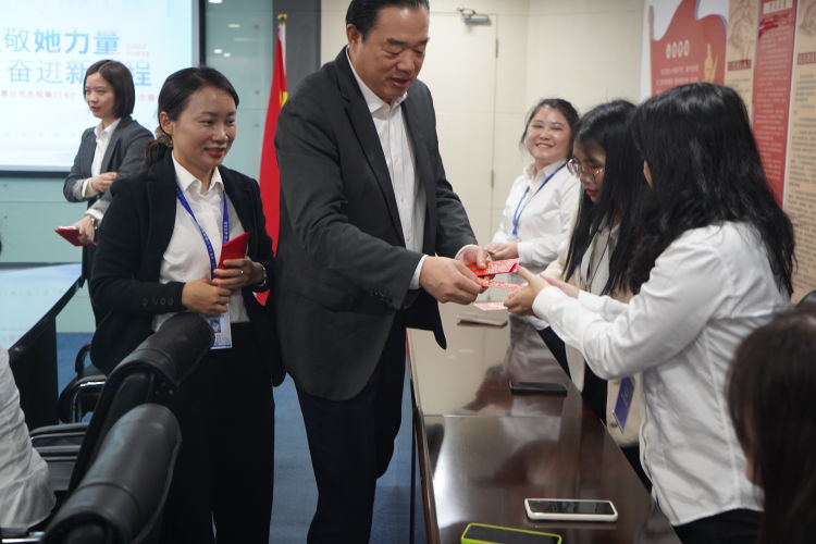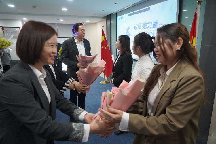 隨后,公司領(lǐng)導(dǎo)層及男職工代表向所有“女神”們送上美麗的蝴蝶蘭、康乃馨、節(jié)日紅包以及美好祝福,希望“女神”們都能像花兒一樣以最美的姿態(tài),綻放優(yōu)雅,邁著從容步伐,迎接新時代新征程的考驗。
