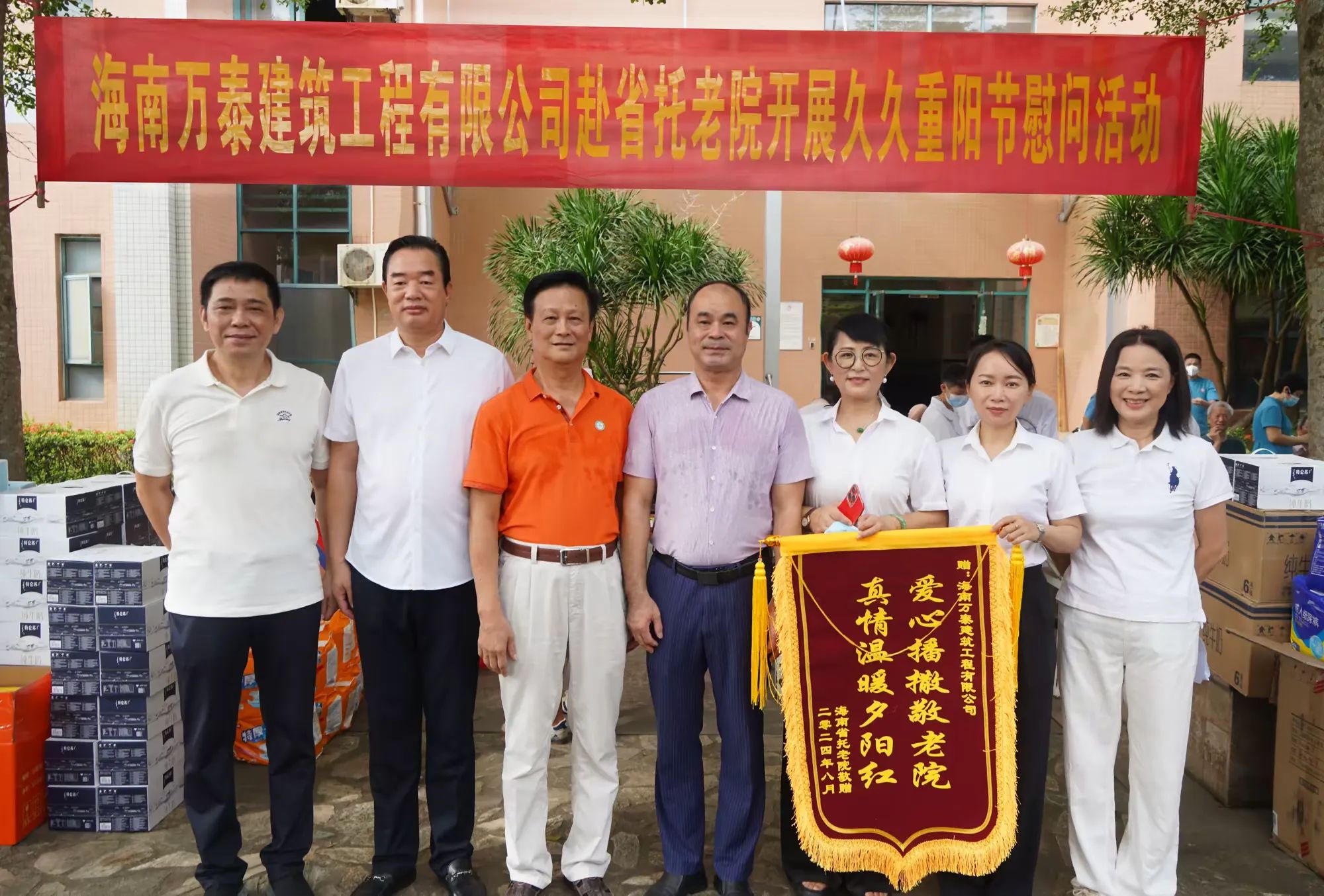 8月19日,為進一步發(fā)揚企業(yè)愛心之舉,傳播敬老愛老養(yǎng)老的優(yōu)秀傳統(tǒng)文化精神,在中秋、重陽節(jié)即將到來之際,海南萬泰建筑工程有限公司參加了由??谑旋埲A區(qū)關(guān)工委、龍華區(qū)金貿(mào)街道商會、海南愛心企家團隊聯(lián)合舉辦的慰問活動。公司總經(jīng)理顏利及黨支部、工會有關(guān)人員參加本次活動。