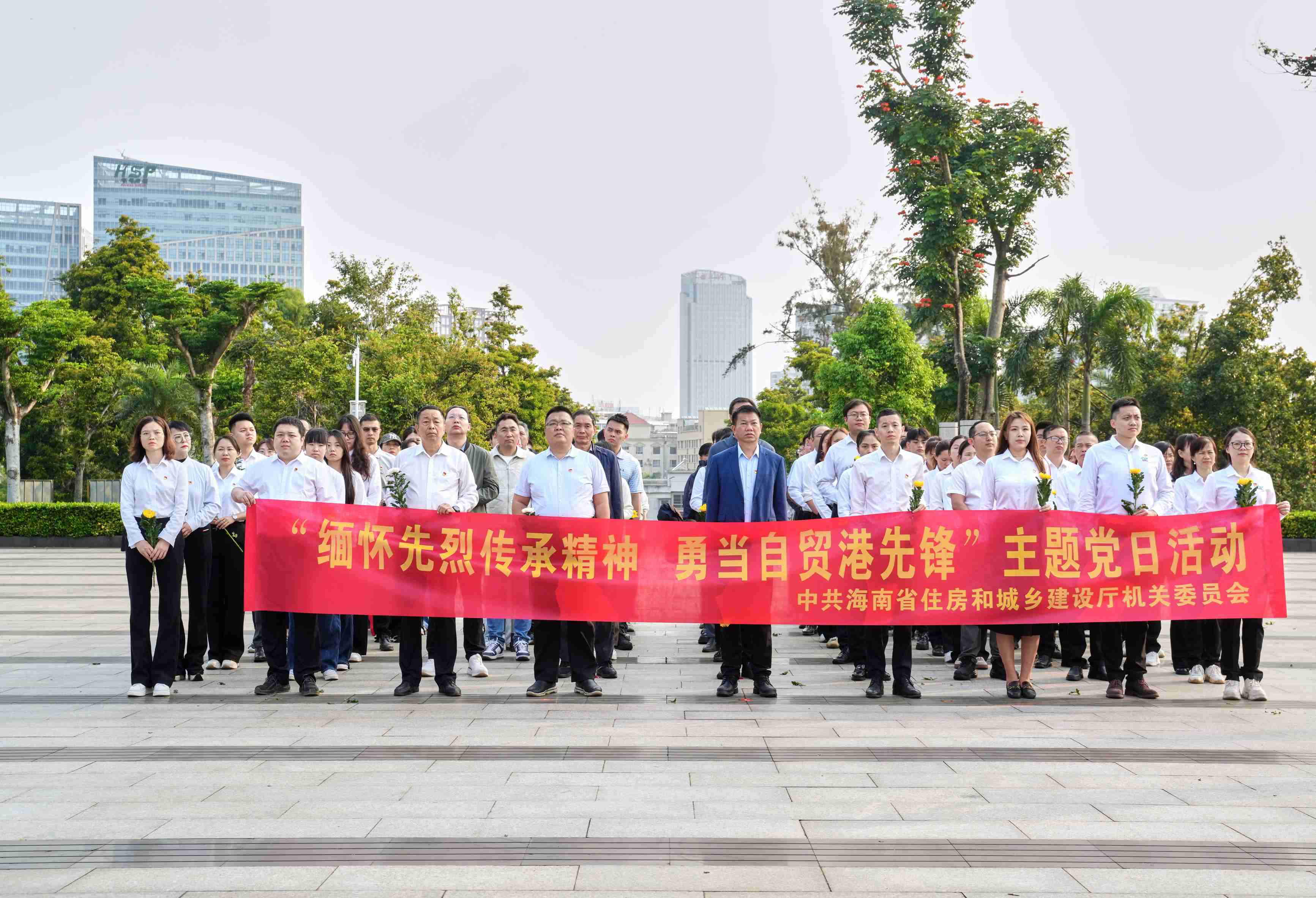 上午8時,來自省住建廳相關(guān)處室以及建筑行業(yè)相關(guān)基層黨組織,共90余名黨員、入黨積極分子齊聚??谑薪夥藕D蠉u戰(zhàn)役烈士陵園。大家身著統(tǒng)一淺色上衣、深色下裝,佩戴黨徽,整齊列隊,在莊嚴肅穆的烈士紀念碑前肅立。