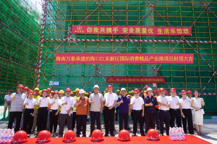 5月19日,??诮瓥|新區(qū)國(guó)際消費(fèi)精品產(chǎn)業(yè)港項(xiàng)目主體結(jié)構(gòu)封頂儀式在項(xiàng)目現(xiàn)場(chǎng)順利舉辦。海南萬(wàn)泰公司總經(jīng)理顏利、有關(guān)部門(mén)負(fù)責(zé)人以及項(xiàng)目部人員,項(xiàng)目各參建單位代表出席了封頂儀式。