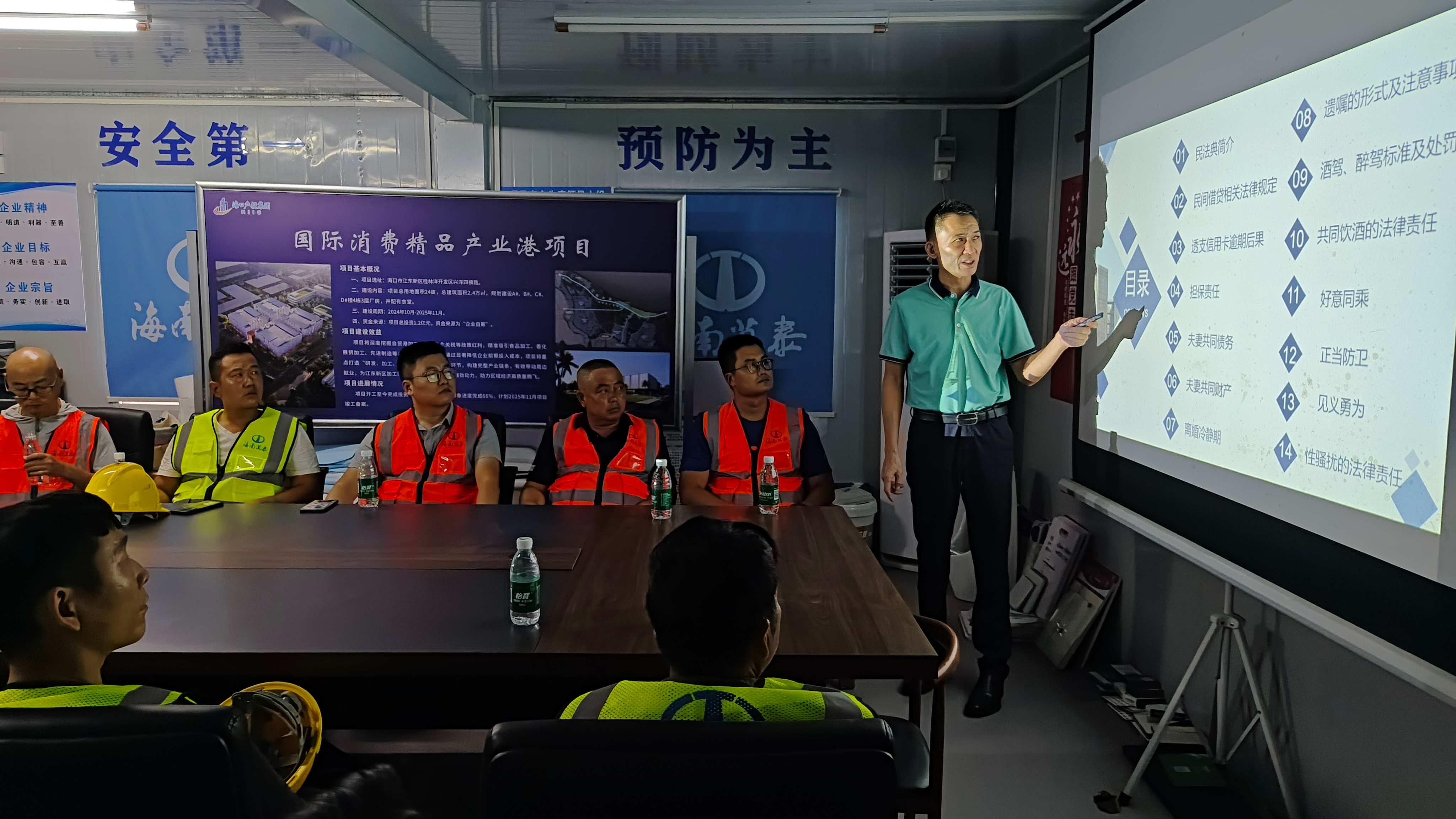 為進(jìn)一步做好普法宣傳工作,增強(qiáng)基層職工的維權(quán)意識(shí),10月20日下午,由海南省建設(shè)工會(huì)主辦的“送法律講座進(jìn)企業(yè)進(jìn)工地”活動(dòng)走進(jìn)海南萬(wàn)泰建筑工程有限公司承建的江東新區(qū)國(guó)際消費(fèi)精品產(chǎn)業(yè)港項(xiàng)目工地現(xiàn)場(chǎng)。近20名項(xiàng)目管理人員及工人代表參與此次普法課堂,活動(dòng)旨在強(qiáng)化基層職工法律意識(shí)與維權(quán)能力。