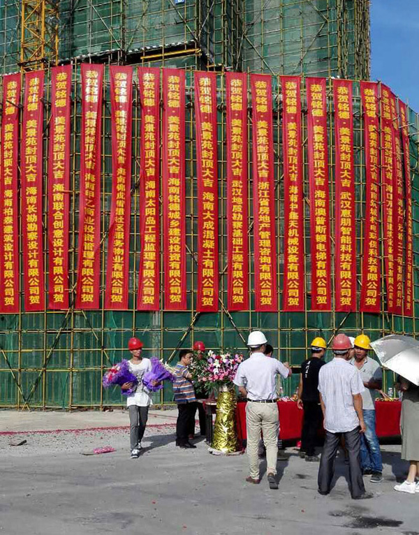 10月16日上午,由海南萬泰建筑工程有限公司承建的銘德?美景苑項(xiàng)目1、2、3號樓在業(yè)主、監(jiān)理及項(xiàng)目部領(lǐng)導(dǎo)的見證下主體順利封頂,現(xiàn)場鞭炮齊鳴,氣氛熱烈。