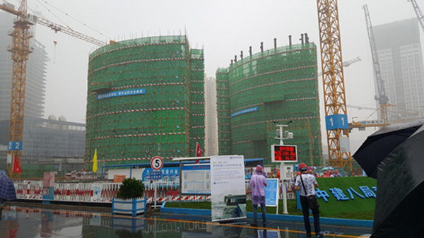 大會(huì)還組織觀摩了中建八局第一建設(shè)有限公司在建的綠色施工項(xiàng)目—“麗澤SOHO”工程。