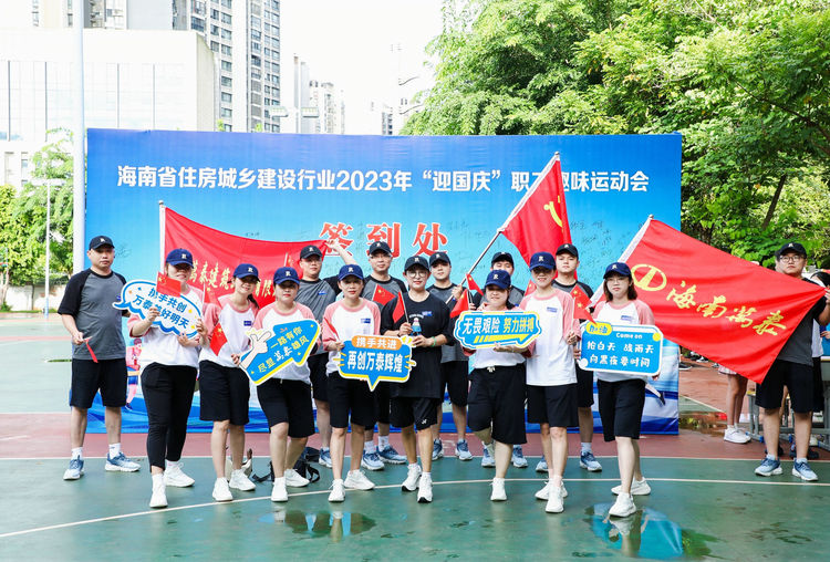 2023年9月16日,海南萬泰建筑工程有限公司黨支部、工會參加了由省住建廳舉辦的海南省住房城鄉(xiāng)建設(shè)行業(yè)2023年“迎國慶”職工趣味運(yùn)動會,海南省農(nóng)林水利交通建設(shè)工會常務(wù)副主席吳清新、省建設(shè)工會常務(wù)副主席劉志偉、省住建廳行業(yè)黨委專職副書記李述朝等領(lǐng)導(dǎo)參加本次活動,來自省住建廳機(jī)關(guān)、直屬單位及建設(shè)工會各基層工會的36支隊伍、500余名隊員投身賽場、一展風(fēng)采。海南萬泰代表隊共派出1名領(lǐng)隊、17名參賽選手參與這場體育盛宴。